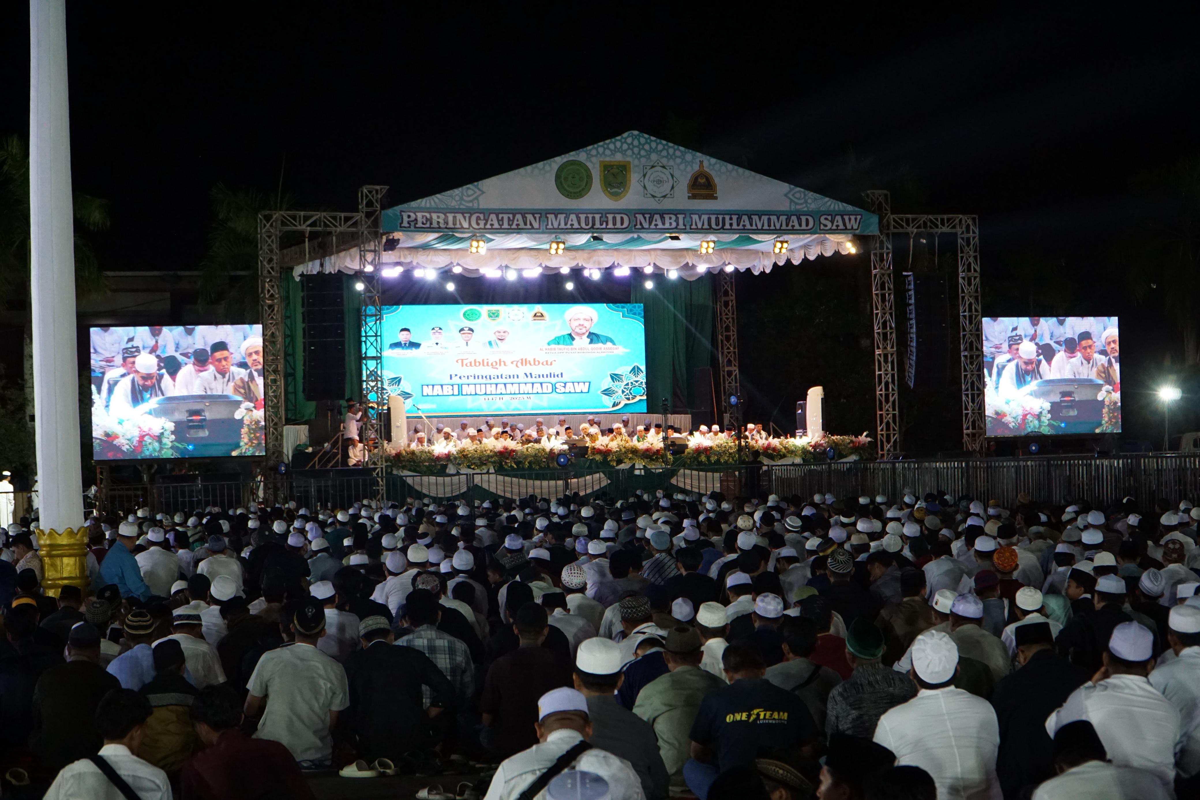 Ribuan Jamaah Padati Tabligh Akbar, Wabup Gamalis Dampingi Al Habib Taufiq Bin Abdul Qodir Assegaf