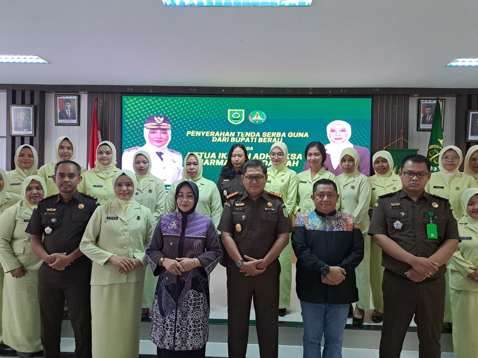 Sebanyak 5 set tenda serbaguna diserahkan secara simbolis oleh Bupati Berau, Hj. Sri Juniarsih Mas kepada Ikatan Adhiyaksa Dharmakarini (IAD) Kejaksaan Berau, Sabtu (27/01) baru-baru ini.