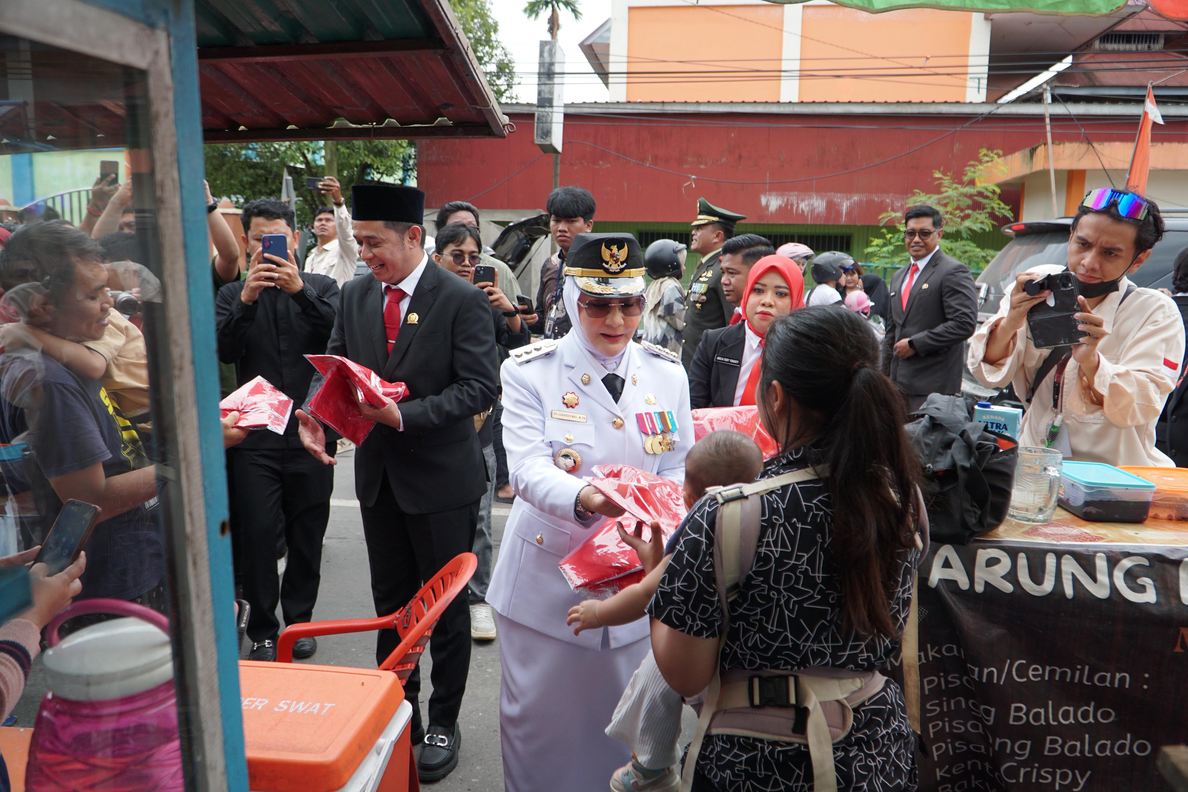 Meriahkan HUT ke-80 RI, Bupati dan Wakil Bupati Bagikan Bendera Merah Putih kepada Warga dan Pengendara